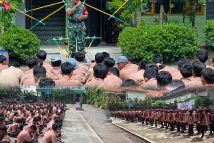 LCN – Pasuruan – Kapten CPT., Sarwo Edi, Danramil 0819/06 Nguling memberikan materi Wawasan Kebangsaan (Wasbang) dan Latihan Baris-Berbaris (LBB) kepada siswa-siswi SMKN 1 Nguling, Kecamat...