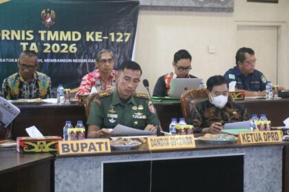 LCN – Kutai Barat – Kodim 0912/Kutai Barat mengikuti kegiatan Video Conference (Vicon) Rapat Koordinasi Teknis (Rakornis) TNI Manunggal Membangun Desa (TMMD) ke-127 Tahun Anggaran 2026 dengan te...