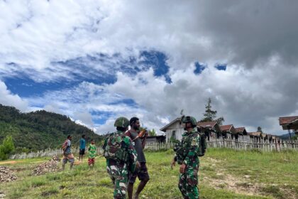 Timcyber—-Okatem – Pegunungan Bintang, Papua. Sebagai bentuk pendekatan teritorial dan wujud kemanunggalan TNI dengan rakyat, prajurit Pos Okpol Satgas Pamtas RI–PNG Yonif 751/Vira Jaya Sakti (V...