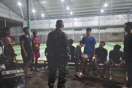 LCN – Lombok Timur – NTB, Babinsa Desa Mamben Baru, Koramil 1615-11/Aikmel, Serda Muh Yamin melaksanakan kegiatan patroli kongkow-kongkow bersama para pemuda di Dusun Orong Rantek Daye, Desa Mam...