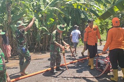 LCN – Lombok Timur – NTB, Danramil 1615-02/Pringgabaya, Kapten Inf Agil, bersama anggota Koramil melaksanakan gotong royong membantu warga yang terdampak banjir akibat jebolnya tanggul Koko Tan...
