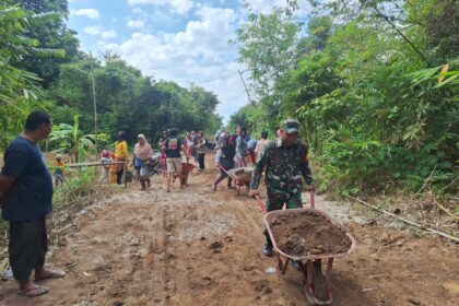 Timcyber—-Kotawaringin Timur- Babinsa Koramil 1015-03/MB Ketapang Serda Edy bersama warga gotong royong perbaikan jalan yg bersama warga Di Desa Bapanggang,Kec.MB Ketapang,Kab.Kotawaringin Timur...