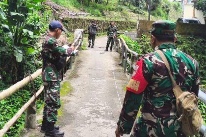 LCN – Boyolali – Babinsa Koramil 03/Mojosongo Kodim 0724/Boyolali, Serka Ade Syahrial dan Serda Arif N, mendampingi Personel Zidam IV/Diponegoro melaksanakan survei rencana pembangunan jembatan ...