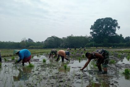 Pasuruan, – Dalam rangka mendukung program ketahanan pangan, Satgas TMMD Ke-127 Kodim 0819/Pasuruan bersama masyarakat melaksanakan penanaman padi seluas 1 hektar di Dusun Kili Tengah, Desa Wono...