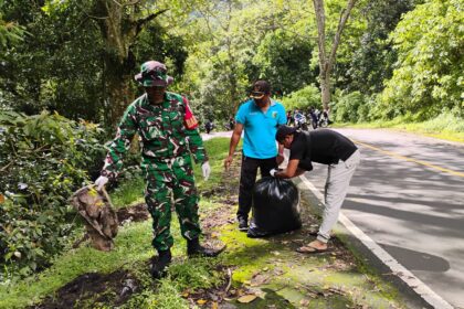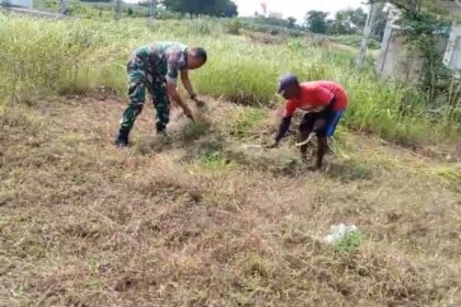 LCN – Pasuruan, – Koramil 0819/08 Rejoso melalui Babinsa Desa Kawisrejo, Serka Sugiarto bersama satu personel melaksanakan kegiatan karya bakti pembersihan di sisi kanan dan kiri lokasi KD...
