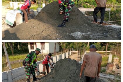 LCN – Bubon, -Dalam rangka Pembinaan Teritorial (Binter) guna mempertebal budaya kegotong-royongan di kehidupan bermasyarakat, Babinsa Posramil 06 Bubon Sertu Anang sukamto melaksanakan karya ba...