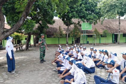 LCN – Boyolali – Dalam rangka menumbuhkan jiwa kepemimpinan dan tanggung jawab di kalangan remaja, Babinsa Koramil 04/Teras Kodim 0724/Boyolali Serma Hariyanto memberikan materi Latihan Dasar Ke...