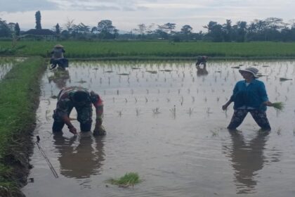 LCN – Blitar – Sebagai wujud nyata dukungan terhadap ketahanan pangan nasional serta memperkuat kemanunggalan TNI dengan rakyat, Babinsa Desa Semen Koramil 0808/15 Gandusari Serda Dedy Awa...