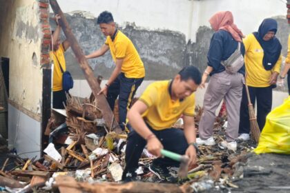 LCN – Mataram – Direktur Polisi Perairan dan Udara (Dirpolairud) Polda Nusa Tenggara Barat, Kombes Pol Boyke F.S. Samola, S.I.K., M.H., terjun langsung membantu membersihkan rumah masyarakat nel...