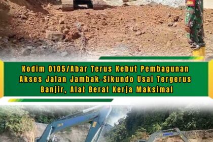 LCN – Aceh Barat – Dandim 0105/Abar Letkol Inf S Kembaren,S.E.,M.I.P.,CFrA., terus terjunkan puluhan Personel dan alat berat guna mengebut pembangunan akses Jalan penghubung Desa Jambak-Si...