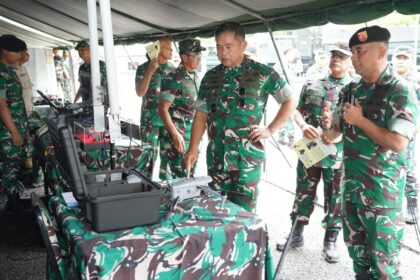 LCN – JAKARTA, – Kepala Staf Angkatan Darat (Kasad) Jenderal TNI Maruli Simanjuntak, M.Sc., meninjau _display_ inovasi hasil Penelitian dan Pengembangan Pertahanan (Litbanghan) TNI Angkatan Dara...