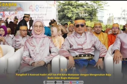 LCN – Pangdivif 3 Kostrad, Brigjen TNI Bagus Suryadi Tayo, M.Sc., menghadiri Acara peringatan Hari Ulang Tahun ke-418 Kota Makassar yang digelar di Lapangan Karebosi, Makassar, Sulsel. Minggu (9...