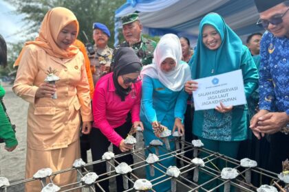 LCN – Lombok Utara – Semangat pelestarian lingkungan berpadu dengan pemberdayaan perempuan dalam kegiatan Launching Penanaman Terumbu Karang di Pantai Impos, Desa Medana, Kecamatan Tanjung, Kabu...