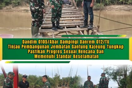 LCN – Aceh Barat – Danrem 012/TU Kolonel Inf Windarto, S.Sos., M.M., didampingi Dandim 0105/Abar Letkol Inf S Kembaren,S.E.,M.I.P.,CFrA., meninjau progres pembangunan infrastruktur Jembata...