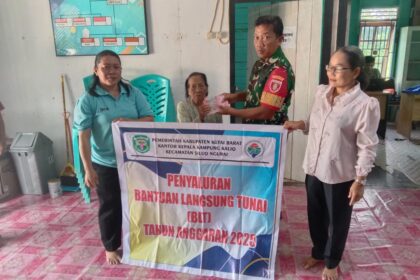 LCN – KUTAI BARAT – Dalam rangka memastikan penyaluran bantuan tepat sasaran dan berjalan tertib, Babinsa Koramil 0912-05/Muara Pahu Serka Bawani melaksanakan pendampingan kegiatan Bantuan Langs...