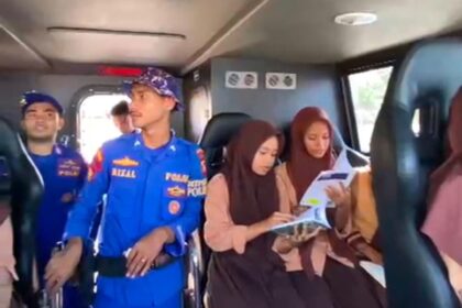 LCN – DOMPU, – DiPelabuhan Calabai, Desa Calabai, Kecamatan Pekat, Dompu, sebuah pemandangan menakjubkan Kapal Polisi XXI-2014 milik Ditpolairud Polda NTB bertransformasi menjadi perpustak...