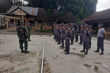 LCN – Wonosobo – Dalam rangka memperkuat kapasitas dan disiplin aparat keamanan desa, anggota Koramil 11/Kaliwiro, Serka Wahyu bersama Sertu Iskandar, melaksanakan pemberian materi Peraturan Bar...