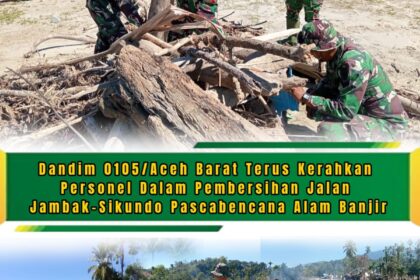 LCN – Aceh Barat – Komandan Kodim (Dandim) 0105/Aceh Barat, Letkol Inf S Kembaren.S.E.,M.I.P.,CFrA kerahkan Personel untuk turun langsung ke lapangan melaksanakan pembersihan Jalan penghub...