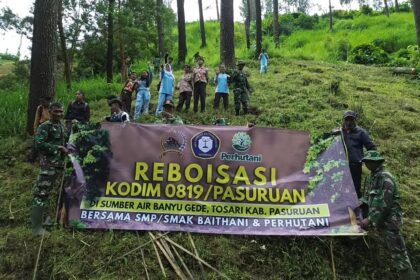 LCN – Pasuruan, – Dalam upaya menjaga kelestarian lingkungan sekaligus melindungi keberlanjutan sumber mata air, Kodim 0819/Pasuruan melaksanakan kegiatan reboisasi dikawasan sumber air Ba...
