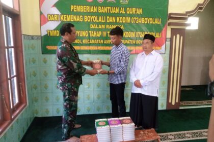 LCN – Boyolali – Dalam rangka mendukung kegiatan keagamaan masyarakat, Satuan Tugas TNI Manunggal Membangun Desa (TMMD) Sengkuyung Tahap IV Tahun 2025 Kodim 0724/Boyolali menyerahkan bantuan kit...