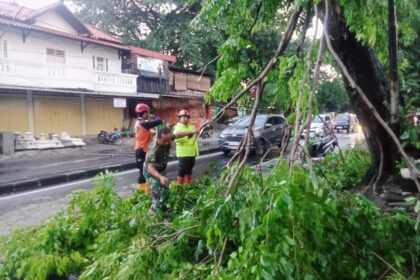 LCN – Surakarta – Babinsa Kelurahan Manahan Koramil 02/Banjarsari Kodim 0735/Surakarta Serma Saring bersama dengan petugas DLH Kota Surakarta dan Anggota Linmas Kelurahan Manahan serta Warga Mas...