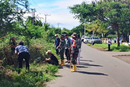 LCN – Lombok Timur – NTB, Dalam rangka menjaga kebersihan lingkungan sekaligus mencegah terjadinya banjir dan timbulnya penyakit akibat penumpukan sampah, Danramil 1615-03/Sambelia Kapten Inf., ...