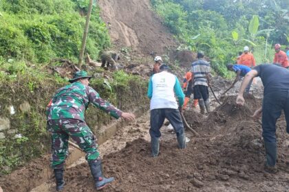 LCN – Blitar – Pasca terjadi tanah longsor yang menutup akses jalan penghubung antara Dusun Sumbergondo dan Dusun Celeng. Babinsa Desa Tulungrejo Kecamatan Gandusari Kabupaten Blitar Pelda...