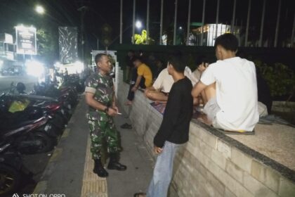 LCN – Lombok Timur, – NTB, Dalam rangka menjaga keamanan dan ketertiban masyarakat, Babinsa Kelurahan Pancor, Koramil 1615-01/Selong, Serma M. Sapardi melaksanakan kegiatan patroli malam di seki...