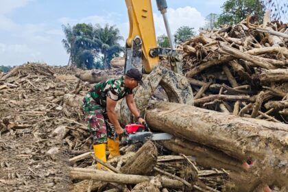 LCN – Satuan Tugas Prajurit Batalyon Zeni Tempur 10 Kostrad, membantu membersikan sisa material pasca bencana banjir bandang di Kabupaten Aceh Tamiang. Sabtu. (10/01/2026). Para prajurit dengan ...