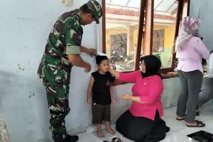 LCN – Blitar – Dalam upaya mendukung program Balita Sehat dan pencegahan stunting, Babinsa Koramil 0808/17 Bakung Kodim 0808/Blitar Serka Lukmanul Hakim mendampingi pelaksanaan Posyandu di...