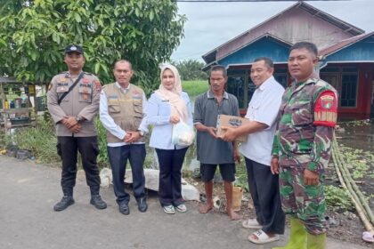LCN – BARABAI – Babinsa Koramil 04/Labuan Amas Selatan (LAS) Kopda Dedy Sulaiman melaksanakan pendampingan pendistribusian bantuan bingkisan bagi warga terdampak bencana alam banjir diwilayah Ke...