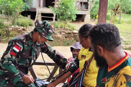 LCN – Bitipding, -Distrik Tarup, – Pegunungan Bintang, Pos Tarup Satgas Pamtas RI–PNG Yonif 751/Vira Jaya Sakti (VJS) dipimpin Danpos Tarup Letda Inf Elpidius Rayson bersama 9 personel me...