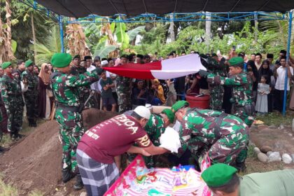 LCN – Lombok Utara – NTB, Suasana haru menyelimuti pemakaman Almarhum (Alm.) Pelda Irfan, anggota Komando Distrik Militer (Kodim) 1606 Mataram yang bertugas diwilayah teritorial Komando Ra...