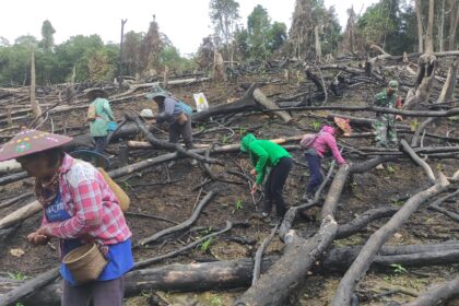 LCN – Kutai Barat – Dalam rangka mendukung program ketahanan pangan di wilayah binaan, Danramil 0912-06/Damai Lettu Arm Setiono bersama Babinsa Kampung Muara Bomboy Serka Supianur serta ibu-ibu ...