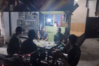 TimCyber— Blitar – Babinsa Kelurahan Karangtengah Koramil 20/Sananwetan, Sertu Robert Tri W, bersama Bhabinkamtibmas Kelurahan Karangtengah Polsek Sananwetan, Aipda Yomano, bergotong royong dengan masyarakat setempat untuk membersihkan sisa tanah galian proyek drainase di sepanjang Jalan Aru, RT 003 RW 002, Kelurahan Karangtengah, Kecamatan Sananwetan, Kota Blitar, Kamis (31/10/2024).