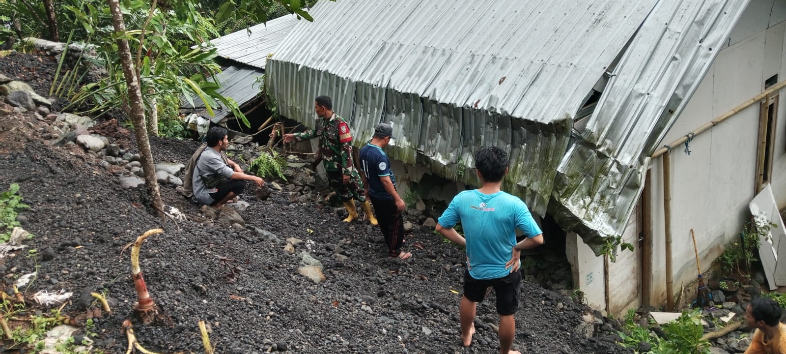 Babinsa dan Warga Gotong Royong Tangani Rumah Tertimpa Talud
