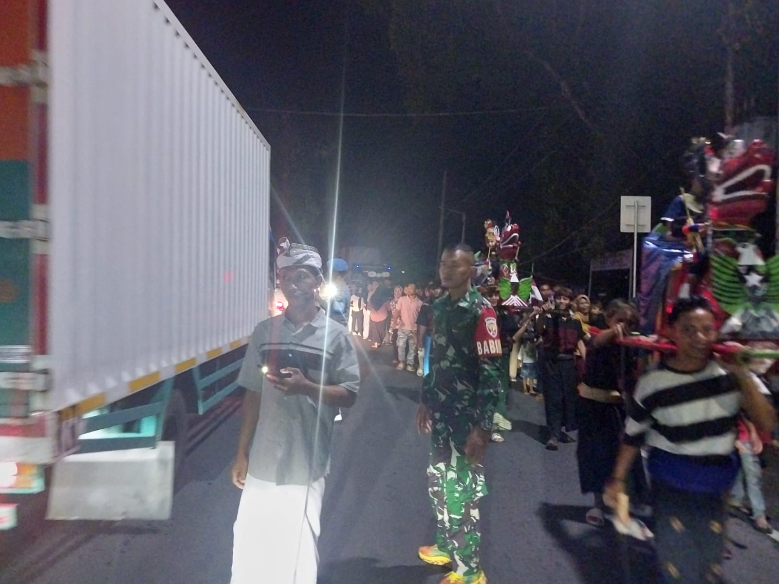 Untuk menjaga kelancaran dan keamanan jalannya acara, Serda Buyu Babinsa Bagik Polak bersama warga setempat bahu-membahu mengatur arus lalu lintas dan mengamankan jalur iring-iringan.