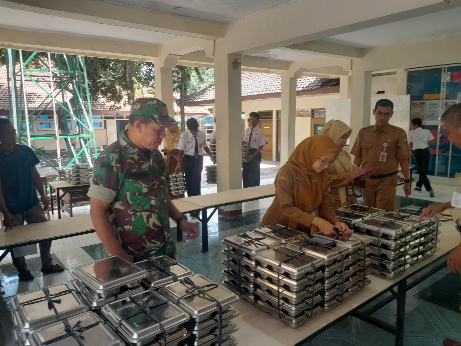 LCN – Surakarta, Babinsa Joyotakan Koramil 03/Serengan Kodim 0735/Surakarta Serka Sudiyono melaksanakan Pendampingan pendistribusian Makan Bergizi Gratis (MBG) di SMP Islam Bakti Jalan, Wahid Hasim Rt 03 Rw 01 Joyotakan Serengan Kota Surakarta, Kamis Pukul 10.00 Wib (27/11/2025)