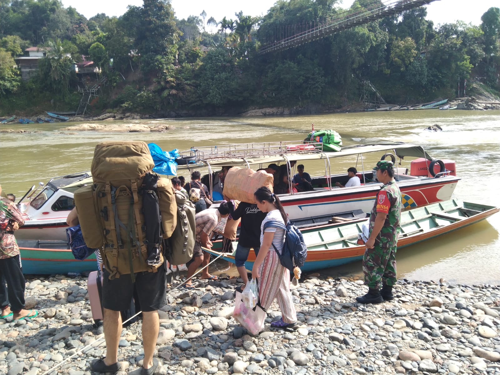 LCN – Mahakam Ulu – Dalam rangka memberikan rasa aman dan nyaman kepada masyarakat pasca Hari Raya Idul Fitri 1447 Hijriah Tahun 2026, Babinsa Koramil 0912-01/Long Apari bersama instansi terkait melaksanakan kegiatan pengamanan arus balik di Pelabuhan Kampung Tiong Ohang, Kecamatan Long Apari, Kabupaten Mahakam Ulu, Rabu (25/03/2026).
