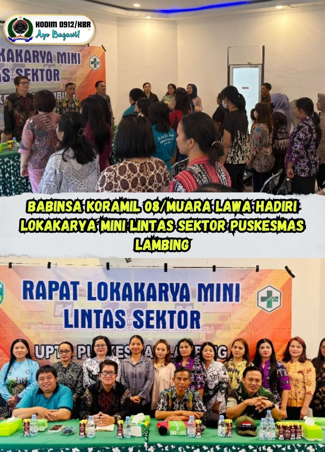 LCN – Kutai Barat — Dalam rangka meningkatkan sinergitas lintas sektor di bidang kesehatan, Babinsa Koramil 08/Muara Lawa Kodim 0912/Kubar menghadiri kegiatan Rapat Lokakarya Mini Lintas Sektor yang diselenggarakan oleh UPTD Puskesmas Lambing, bertempat di Gedung Serbaguna Kecamatan Muara Lawa, Kampung Dingin, Sabtu (25/04/2026) pukul 09.30 WITA.