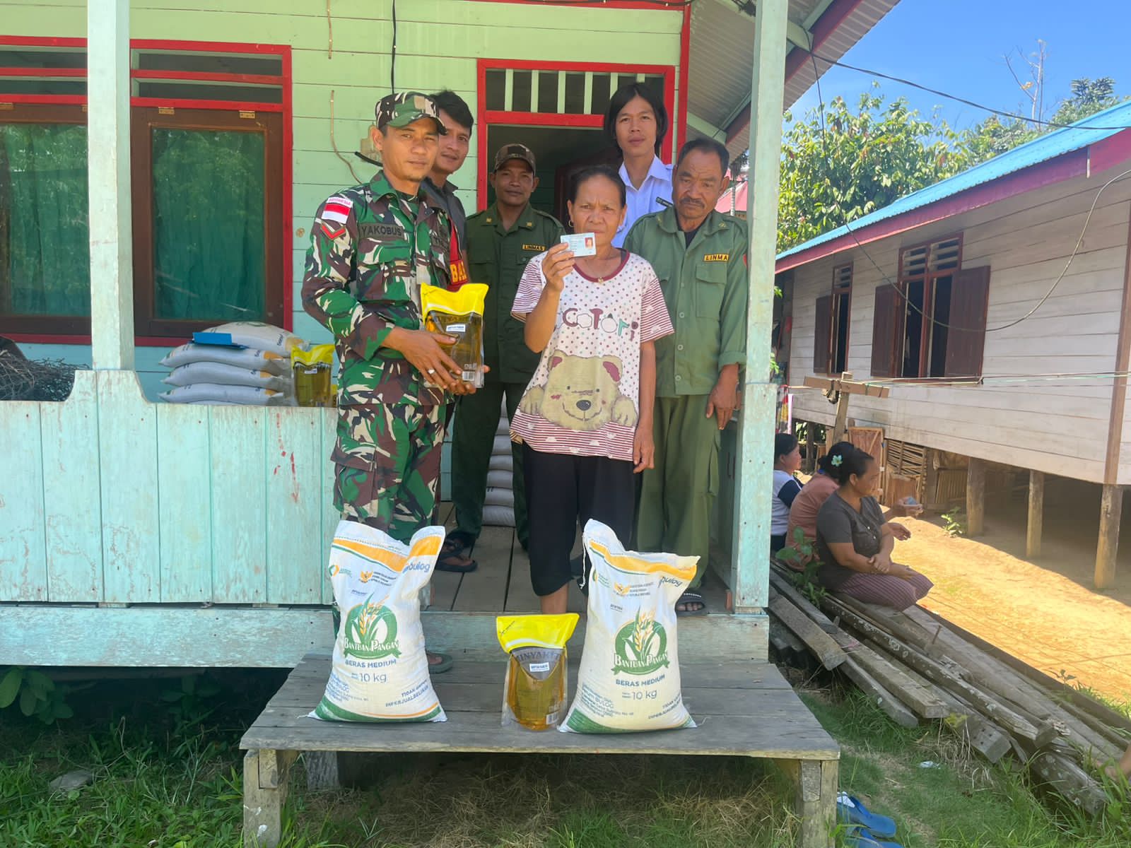 LCN – Mahakam Ulu – Babinsa Koramil 0912-02/Long Pahangai melaksanakan pendampingan kegiatan penyaluran Bantuan Ketahanan Pangan dari Perum Bulog Cabang Samarinda kepada masyarakat kurang mampu di Kampung Delang Kerohong, Kecamatan Long Pahangai, Minggu (26/04/2026).