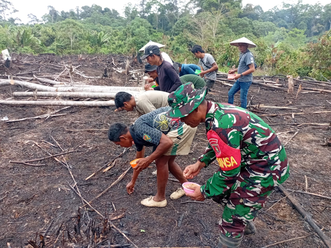 LCN – Mahakam Ulu – Babinsa Koramil 0912-03/Long Bagun melaksanakan kegiatan gotong royong bersama warga dalam penanaman padi gunung di Kampung Batumajang, Kecamatan Long Bagun, Kabupaten Mahakam Ulu, Jumat (03/10/2025).