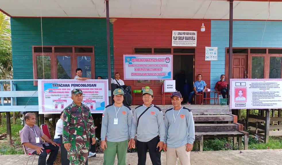 LCN – Kutai Barat – Babinsa Koramil 0912-05/Muara Pahu, Serka Hamka Sofyan, melaksanakan kegiatan pengamanan dan pemantauan jalannya pemilihan Kepala Adat Kampung Tendik, Kecamatan Siluq Ngurai, Kabupaten Kutai Barat, Rabu (08/10/2025).