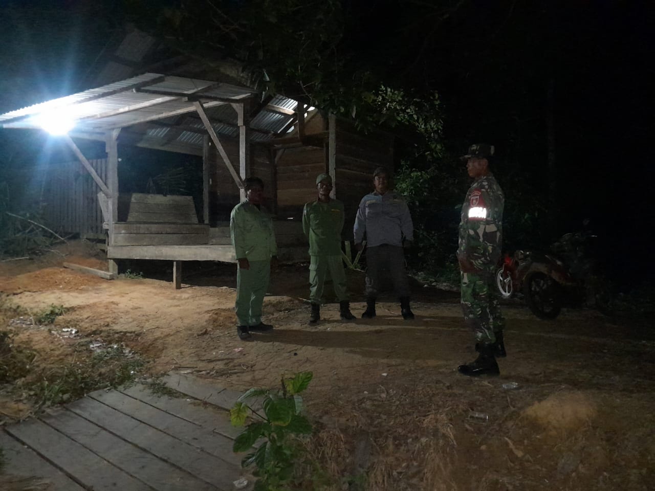 LCN – Kutai Barat – Babinsa Koramil 0912-10/Bongan, Serda Anwar, melaksanakan kegiatan patroli bersama Komponen Cadangan (Komduk) diwilayah Kampung Tanjung Sari, Kecamatan Bongan, Senin (30/09/2025).