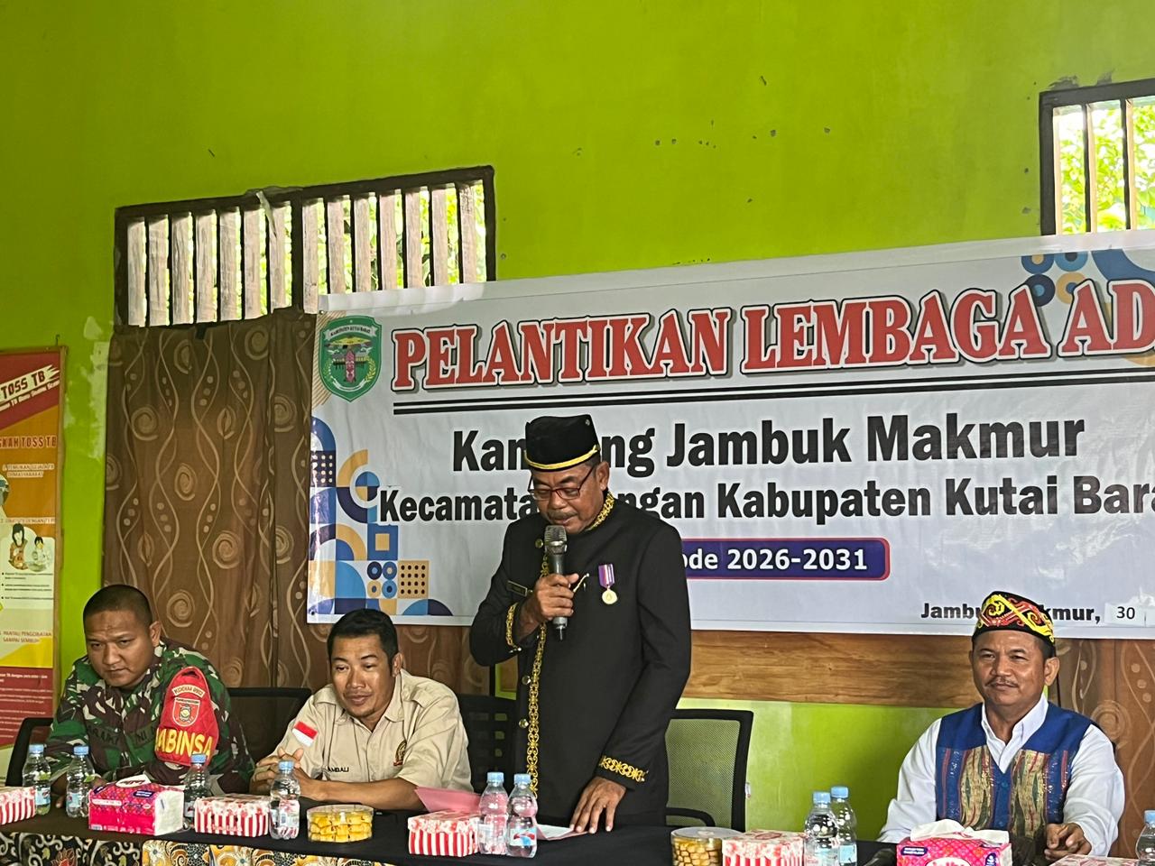 LCN – Kutai Barat – Babinsa Koramil 0912-10/Bongan menghadiri pelantikan Lembaga Adat Kampung Jambuk Makmur yang dilaksanakan, Senin, 30 Maret 2026 pukul 09.00 WITA, bertempat di Gedung BPU Kampung Jambuk Makmur, Kecamatan Bongan, Kabupaten Kutai Barat.