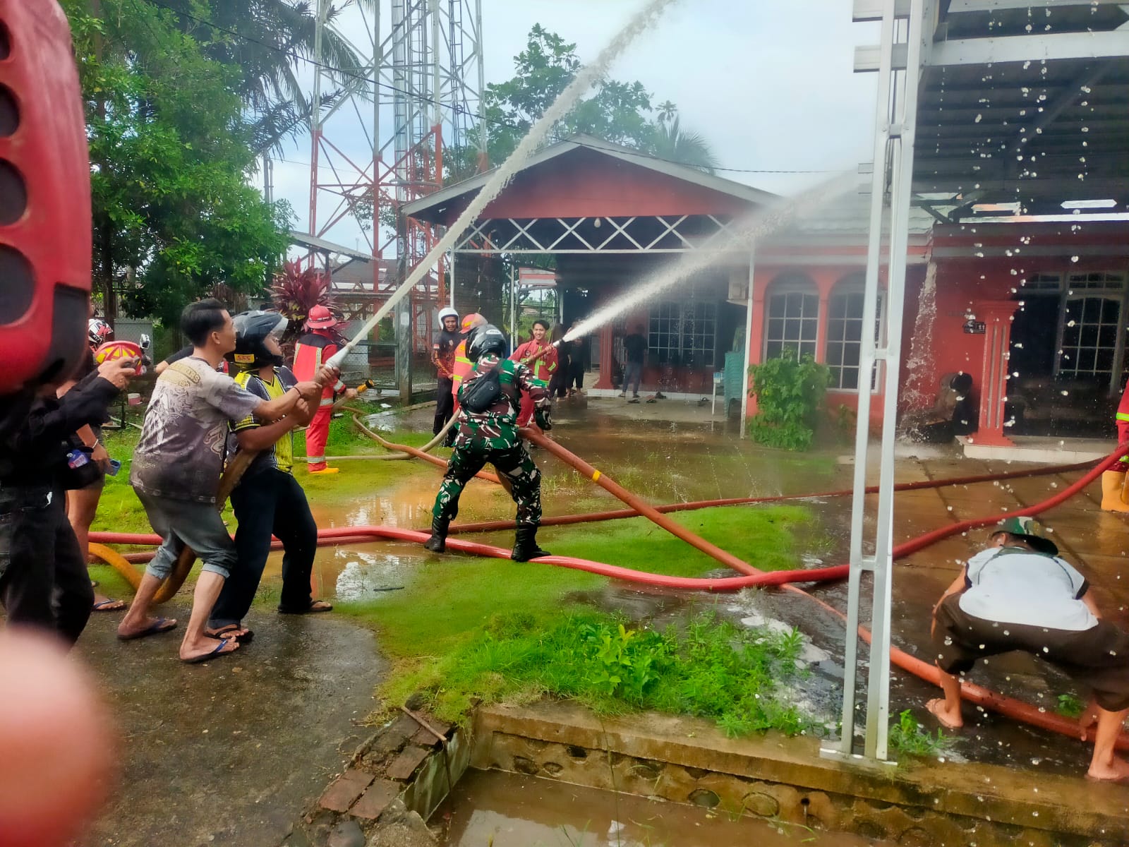 Babinsa Koramil 1002-02/Barabai Serma Sudarwanto yang berada diwilayah binaan turut bergerak cepat mendatangi lokasi kejadian dan membantu proses pemadaman bersama warga, relawan, serta petugas pemadam kebakaran.