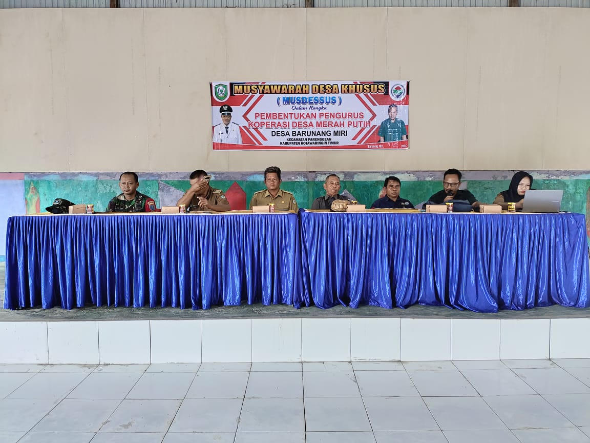 Timcyber—-Kotawaringin Timur – Babinsa Koramil 1015-07/Parenggean Sertu Herman menghadiri Sosialisasi pembentukan Koperasi Merah Putih,bertempat di Gedung Serba Guna Desa Barunang Miri,Kec.Parenggean,Kab.Kotim,Selasa(27/05)