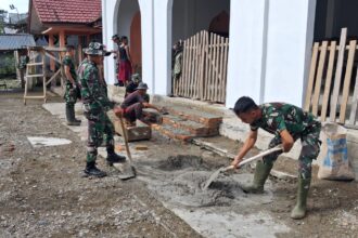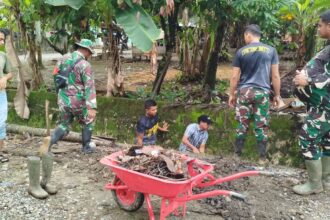 LCN – Kutai Barat – Babinsa Koramil 13/Barong Tongkok, Serka Bowo Suryanto bersama aparat Komduk melaksanakan kegiatan pengamanan peringatan Maulid Nabi Muhammad SAW yang digelar di Kampung Sendawar, Kecamatan Barong Tongkok, Selasa (16/09/2025).
