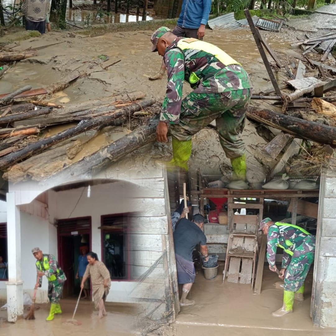 Kegiatan bantuan ini dilakukan sebagai wujud kepedulian TNI terhadap kesulitan masyarakat, sekaligus bagian dari tugas kemanusiaan untuk mempercepat proses pemulihan pasca bencana. Para Babinsa bahu-membahu bersama warga membersihkan lumpur, mengangkut material yang berserakan, serta memastikan akses jalan kembali dapat dilalui.