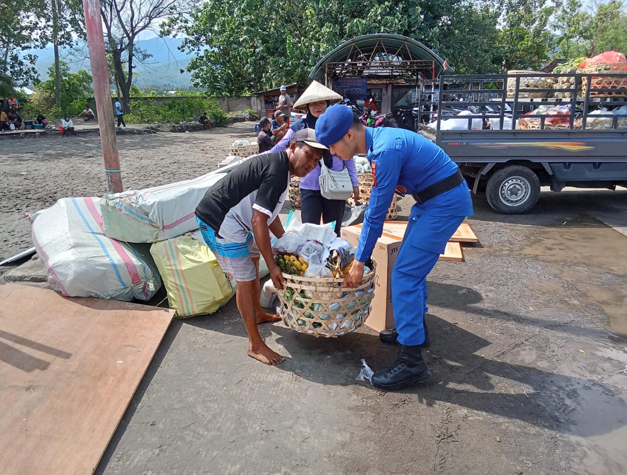 Berbaur Dengan Masyarakat, Tidak Canggung Menolong, Personil Sat Polairud Lombok Utara Jadi Contoh di Pelabuhan Bangsal